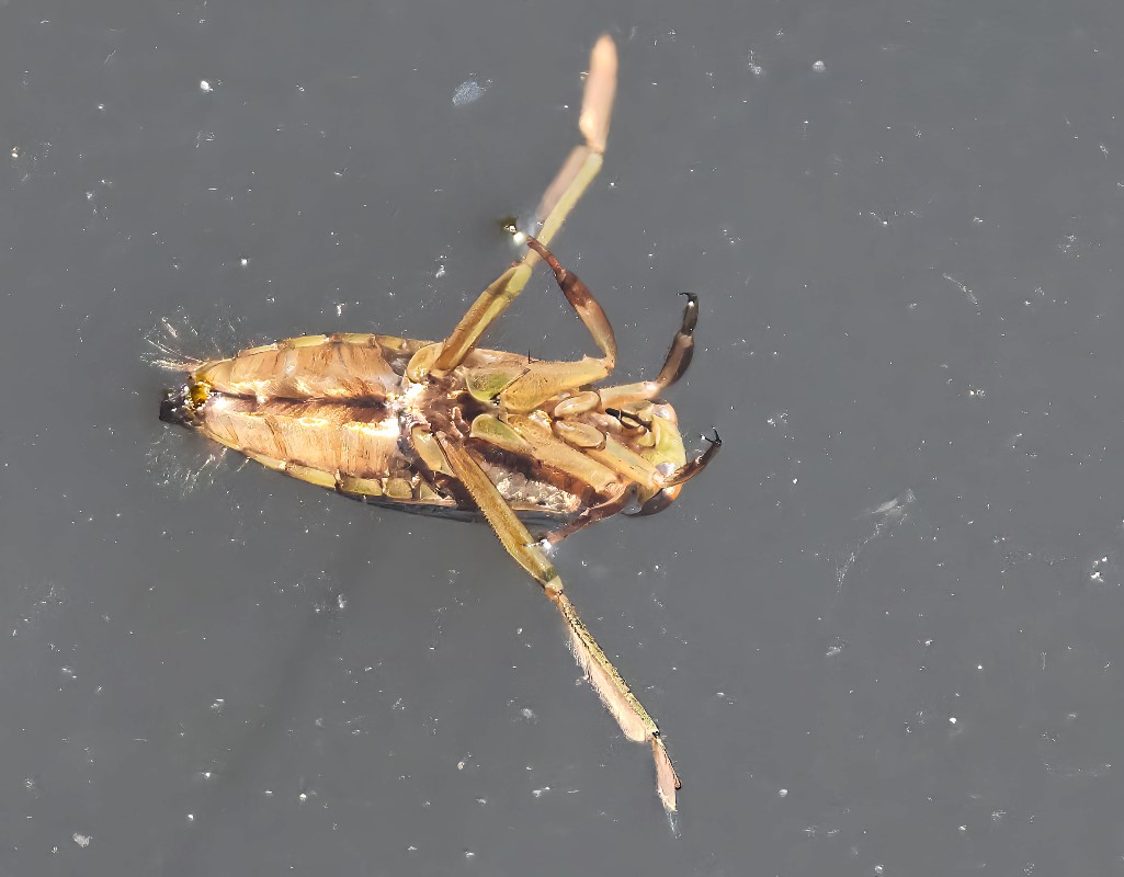 マツモムシ 2023.5.31 三条市 白鷺公園で撮影、変わった虫で、腹を見せて泳いでおりました。