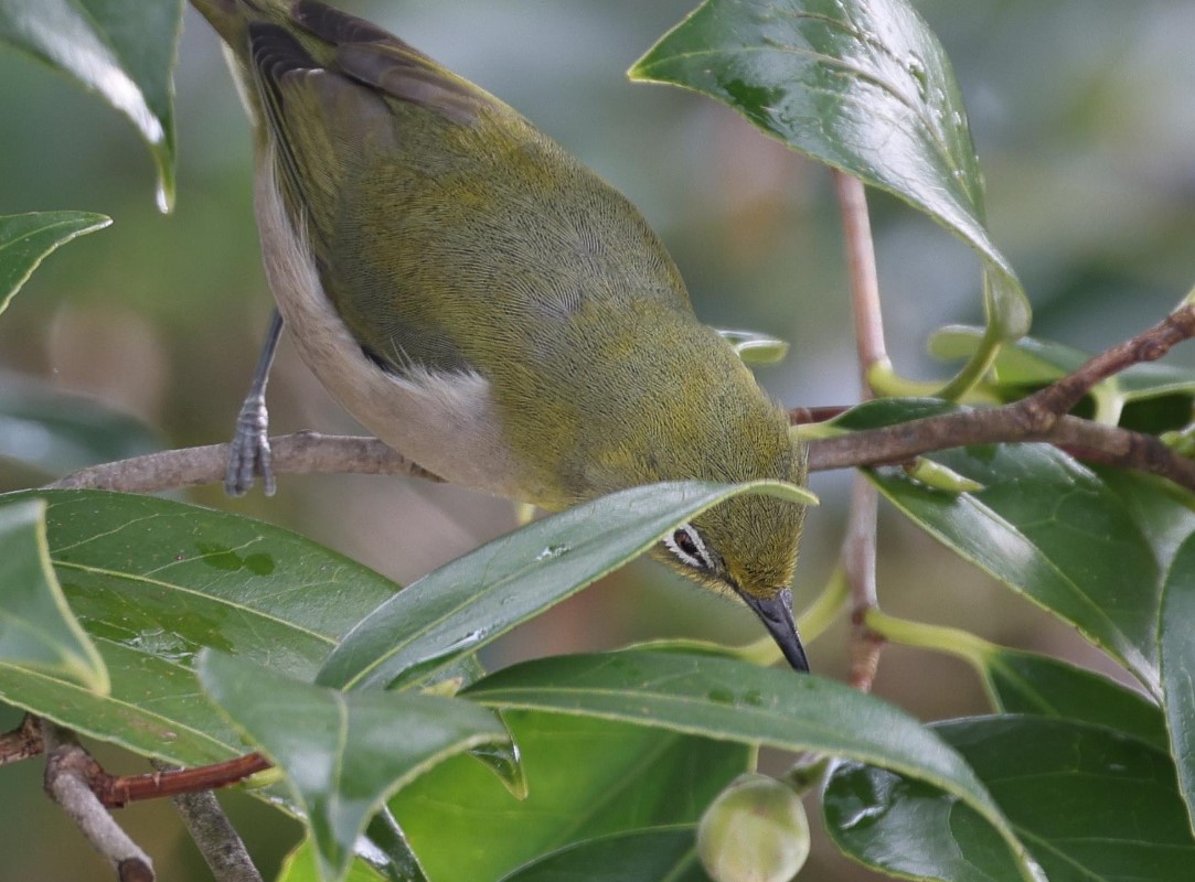 メジロ 2023.12.26 庭で撮影、椿の花の蜜を狙っておりました
