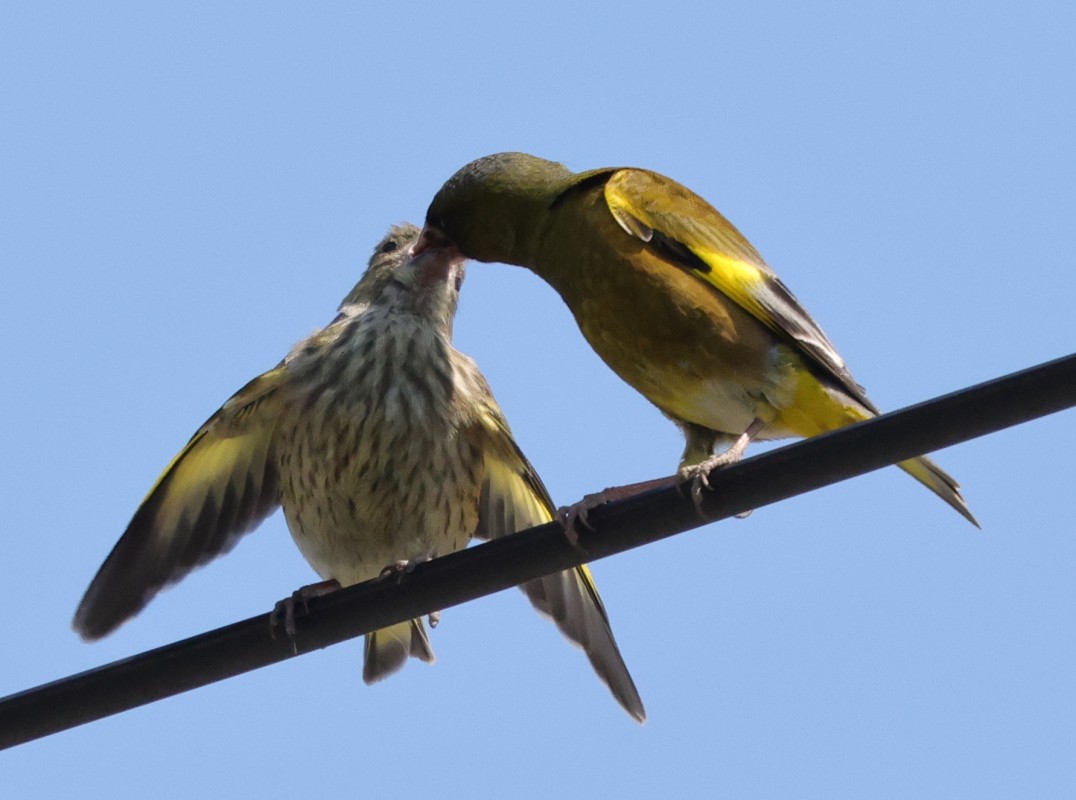 カワラヒワ親子 2025.5.28 自宅で撮影