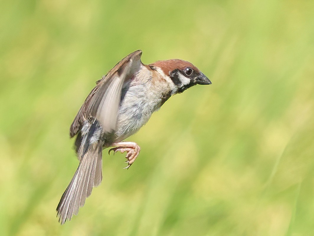スズメ 2025.9.19 田んぼで撮影、稲刈り前で稲穂が美味しそうでした