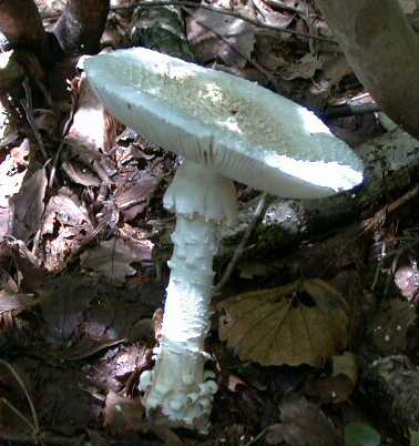 - テングタケ属..,ツボあり 胞子紋 白,致命的な猛毒を有するキノコが多い