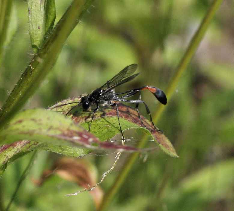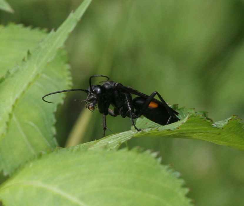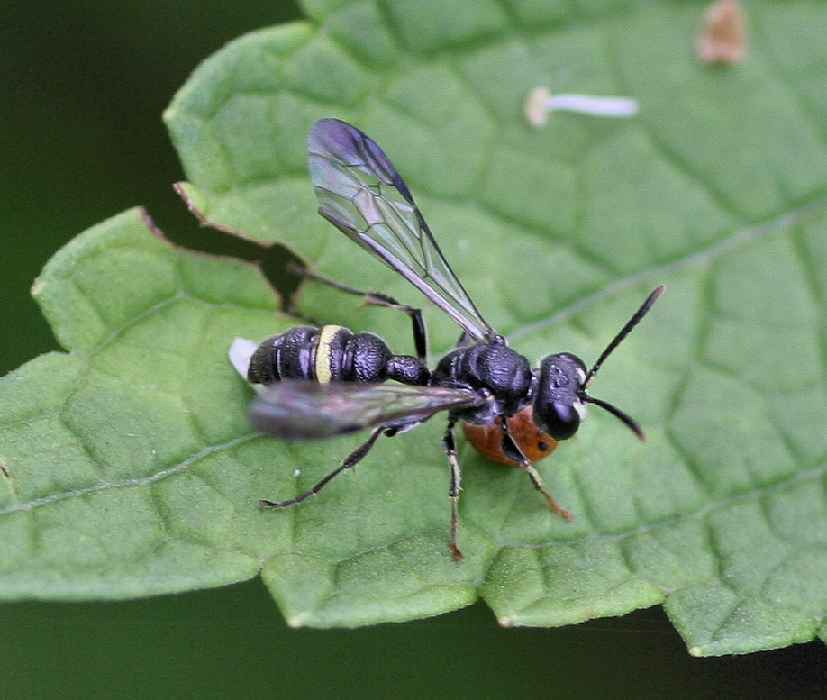 2013.9.3 上堰潟公園で撮影、体長 16-19.5mm、分布 本、九、四、 竹筒などに蛾の幼虫を入れ、泥で巣を作るようです。