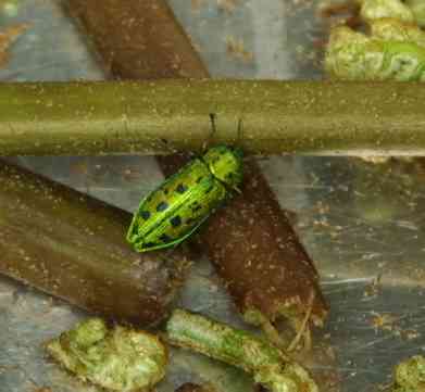 クロホシタマムシ 2002.5.19 ワラビを採りに行き,家に連れてきたようです。 |