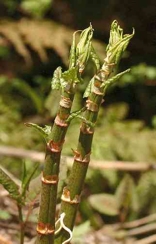 画像程度に伸びたものでも、枝分かれした柔らかそうな所を採取して食べました。 トリアシショウマと同じように、ゴマあえ,テンプラなどで食べます。 また、お浸しとしても、多少の苦味がありますが美味しく食べられました。 |