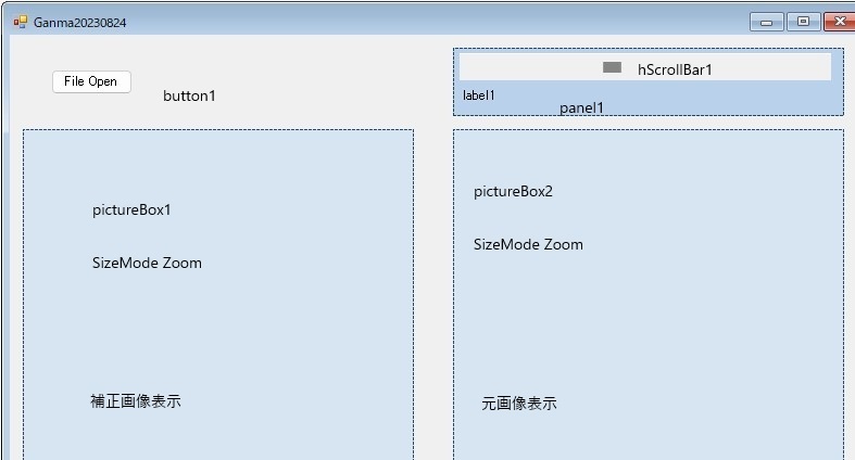 左記は、ソースで、 hScrollBar1_ValueChangedで修正画像を表示